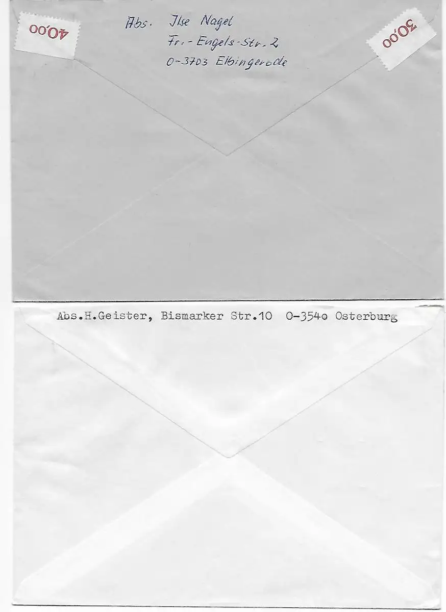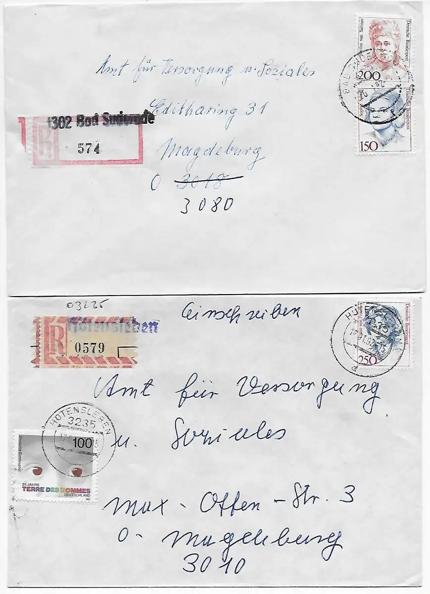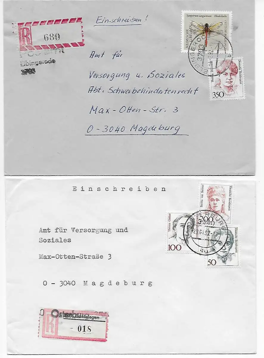 7x Einschreiben mit altem Einschreibezettel, neue Bundesländer, 1992