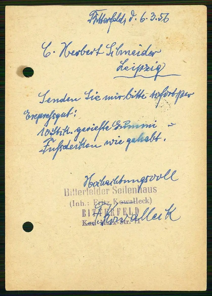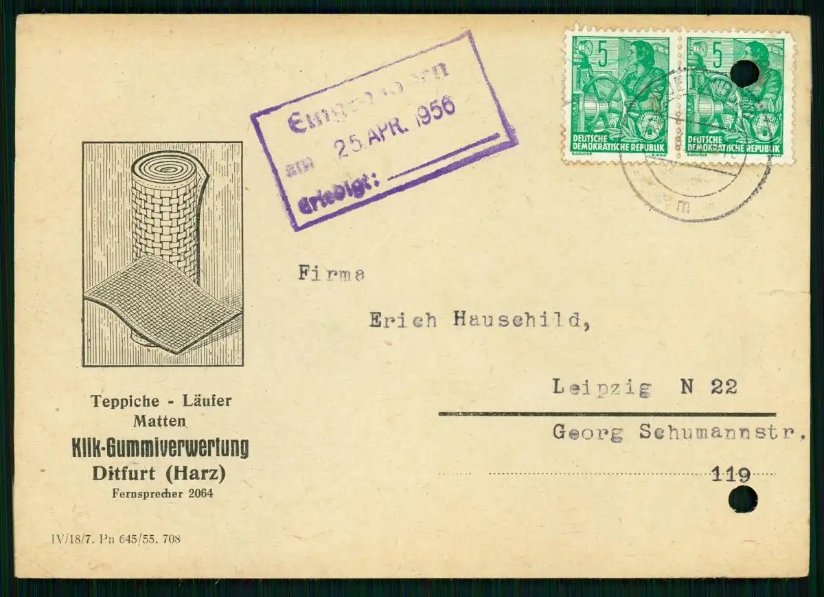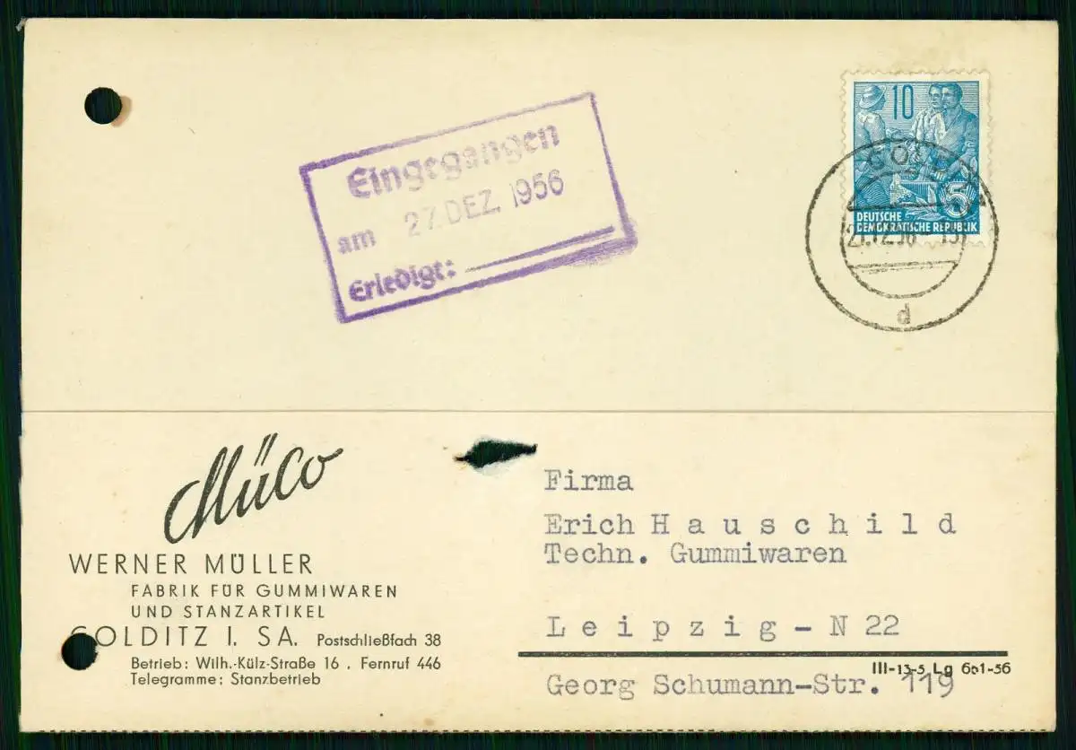 7x Karte - Hauschild Gummiwaren Leipzig 1956 - versendet an Firmen SN - ST - DDR