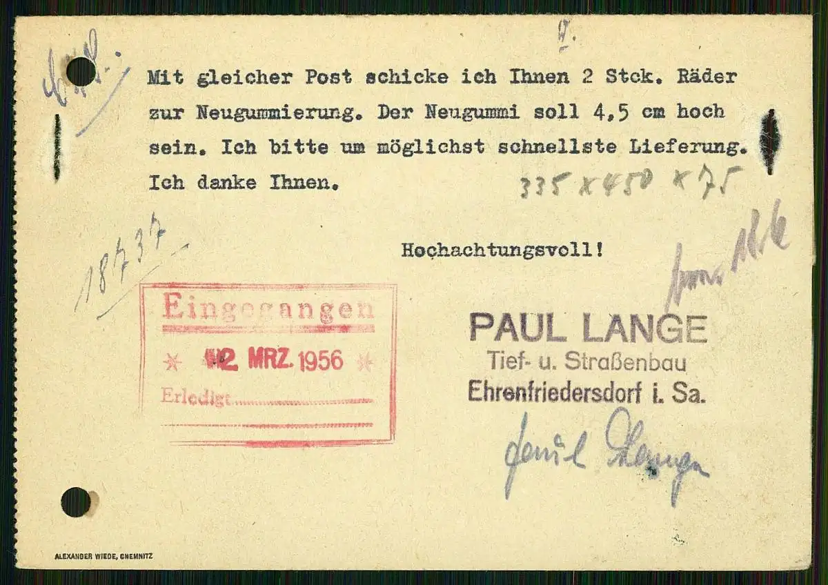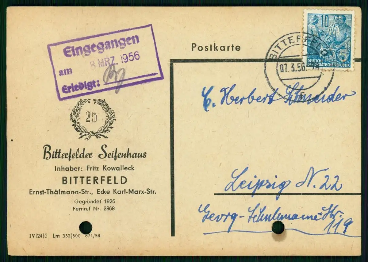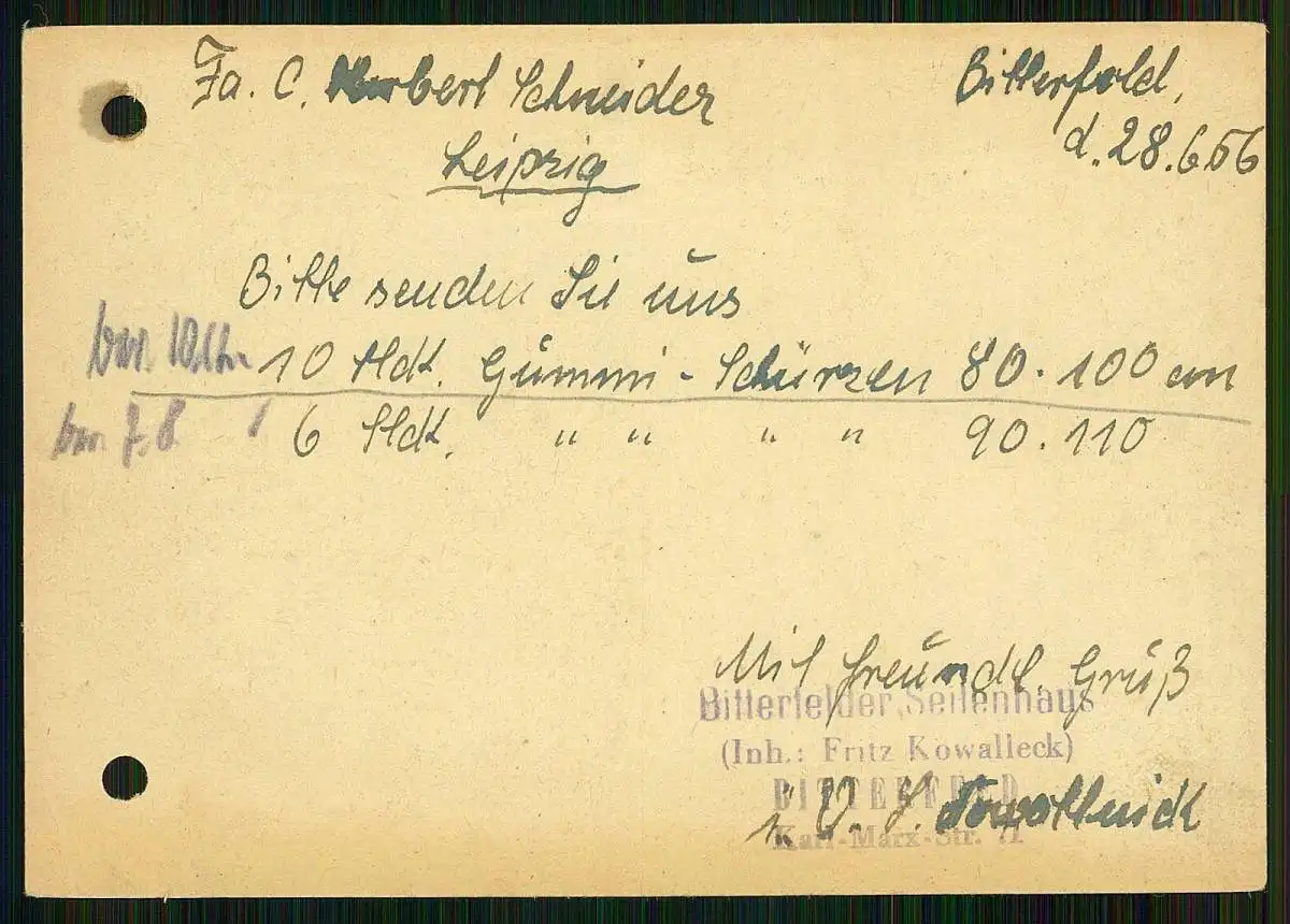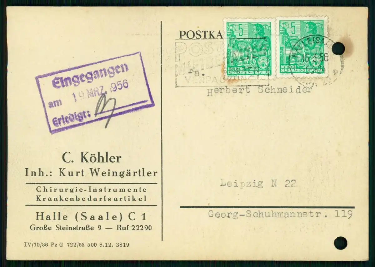 7x Karte - Hauschild Gummiwaren Leipzig 1956 - versendet an Firmen SN - ST - DDR