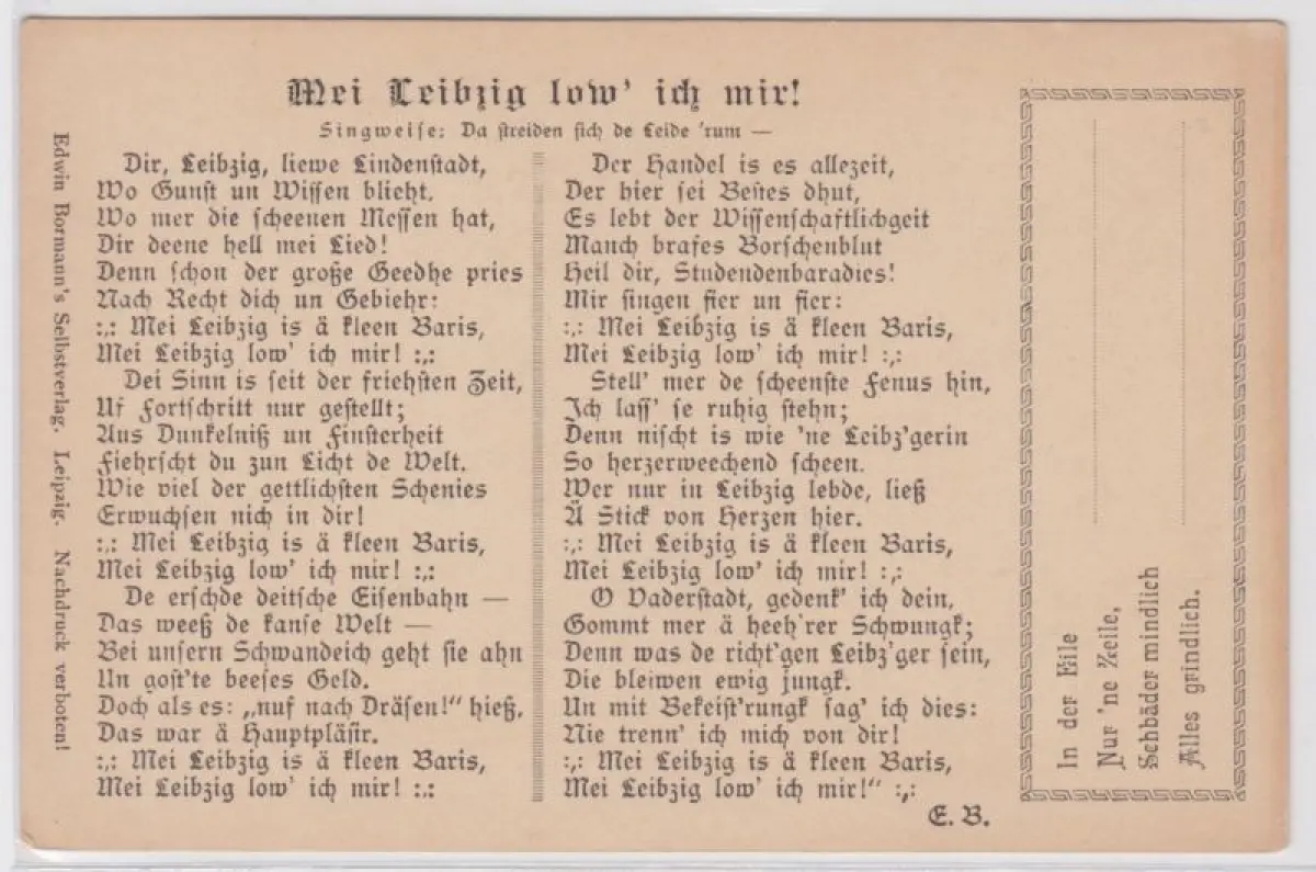 80682 Lied Ak Leipzig "Mei Leibzig low´ich mir!" Edwin Bohrmanns Selbstverlag