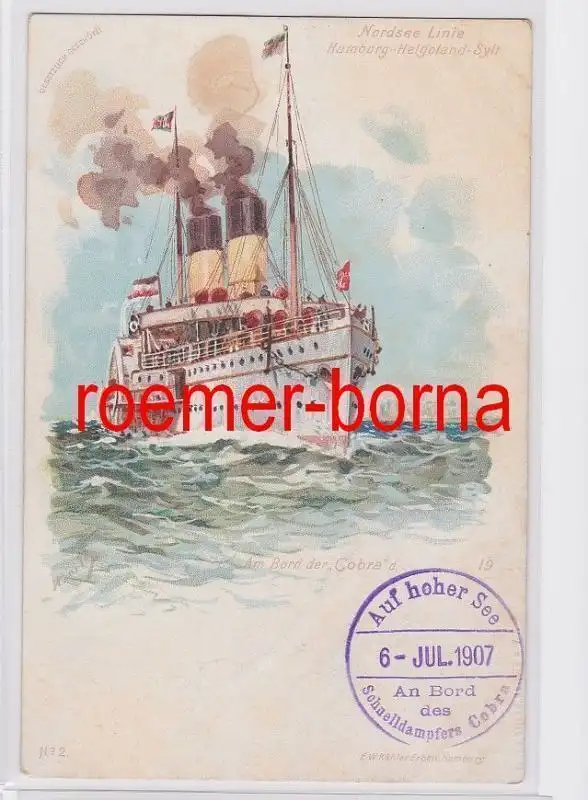 ungelaufen (aber auf der Vorderseite gestempelt: Auf hoher See, An Bord des Schnelldampfers Cobra, 6. Juli 1907)