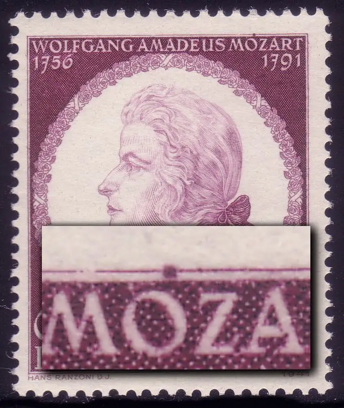 810II Mozart mit PLF II Punkt im Oberrand über OZ von MOZART, Feld 4, **