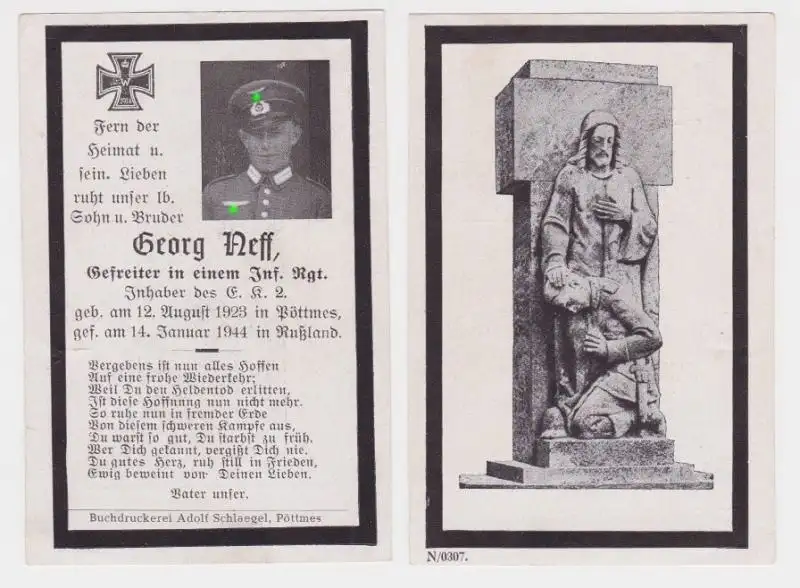 81743 Sterbebild WK2 Gefreiter Infanterie Regiment gefallen in Russland 1944