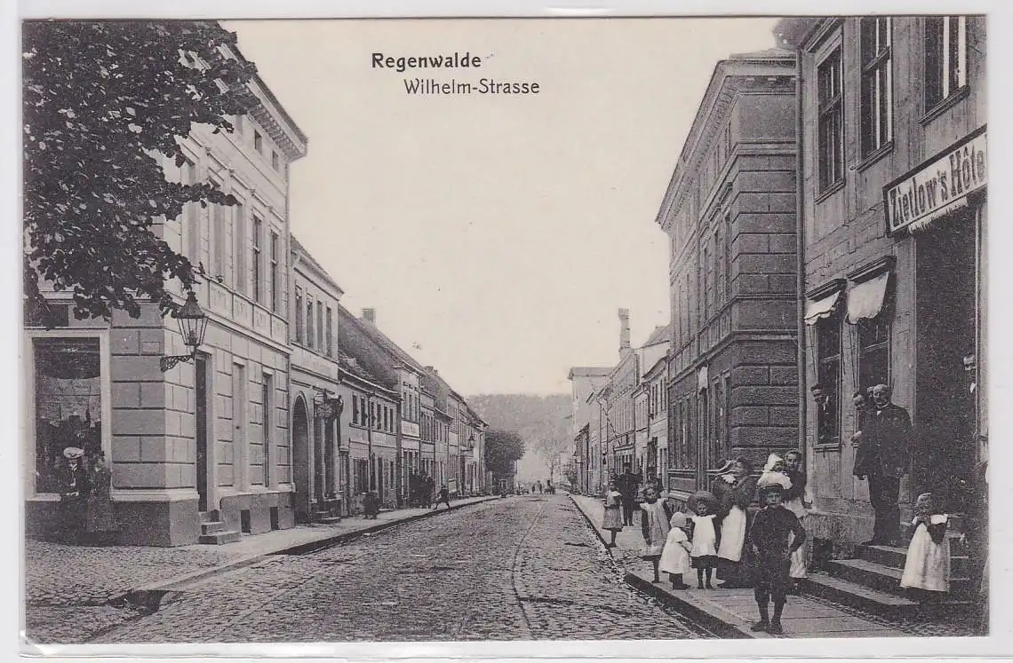 82219 Ak Regenwalde Resko Wilhelmstraße mit Zietlow´s Hotel 1909