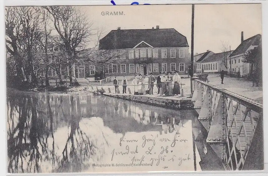 83350 AK Gramm (Gram Haderslev Kommune) - Teichpartie mit Brücke 1906