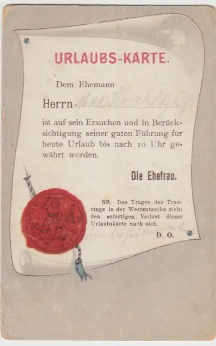 - (8474) Ansichtskarte, postcard, PPC - Sprüche, Urlaubskarte, Dem Ehemann... 1911