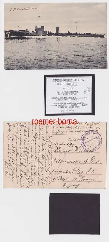 84770 Marineschiffspost Ak 1. Matr. Art. Abteilung Feste Friedrichsort 1915