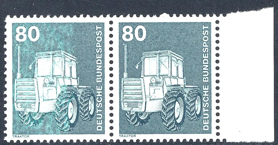 853 IuT Traktor 80 Pf. - Randpaar mit Farbverschmierung auf linker Marke, **