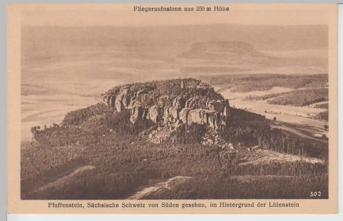 (85811) AK Sächs. Schweiz, Pfaffenstein, Luftbild, vor 1945