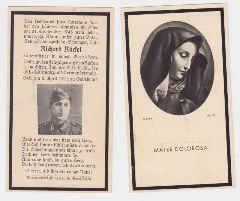 87702 Sterbebild WK2 Unteroffizier Grenadier-Regiment K?mpfe im Osten 1943
