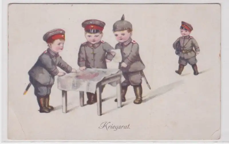 88066 Feldpost Ak Militär Humor Kinder beim 'Kriegsrat' 1917
