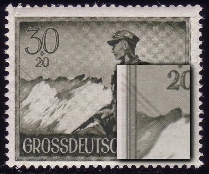885I Wehrmacht 30 Pf mit PLF I Drahtseilbahn links oben, Feld 25, **