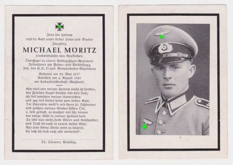 900902 Sterbebild WK2 Oberj?ger Gebirgsj?ger-Regiment Kubanbr?ckenkopf 1943