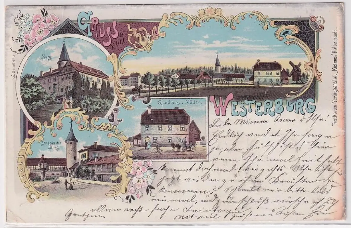 901320 Ak Lithographie Gruß aus Westerburg in Anhalt Gasthaus usw. 1901