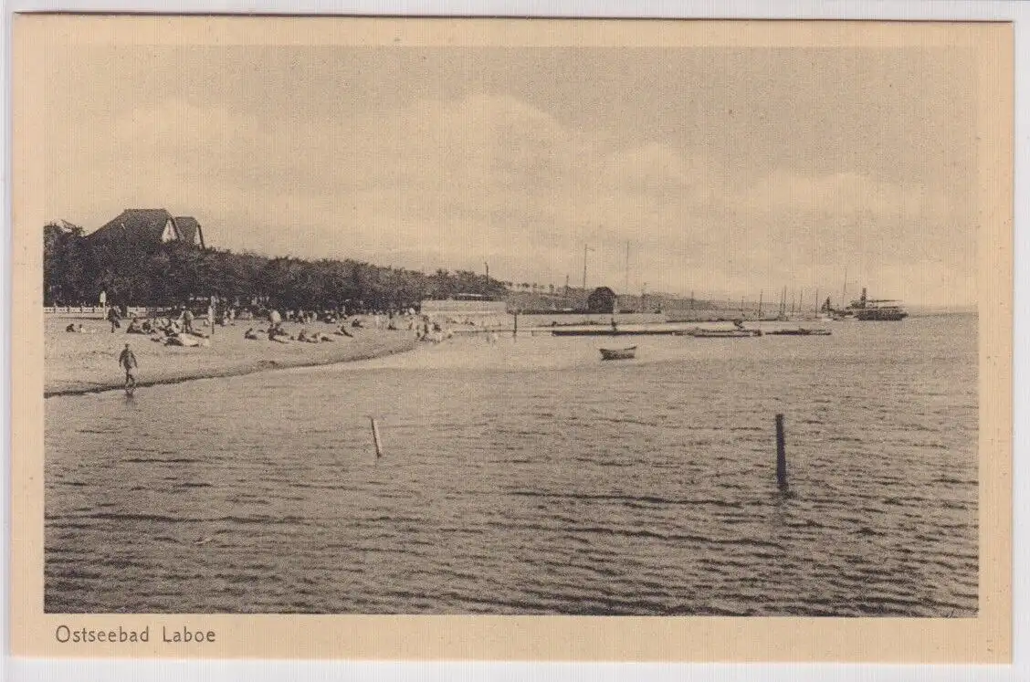 902151 Ak Ostseebad Laboe - Blick vom Meer auf den Strand um 1920