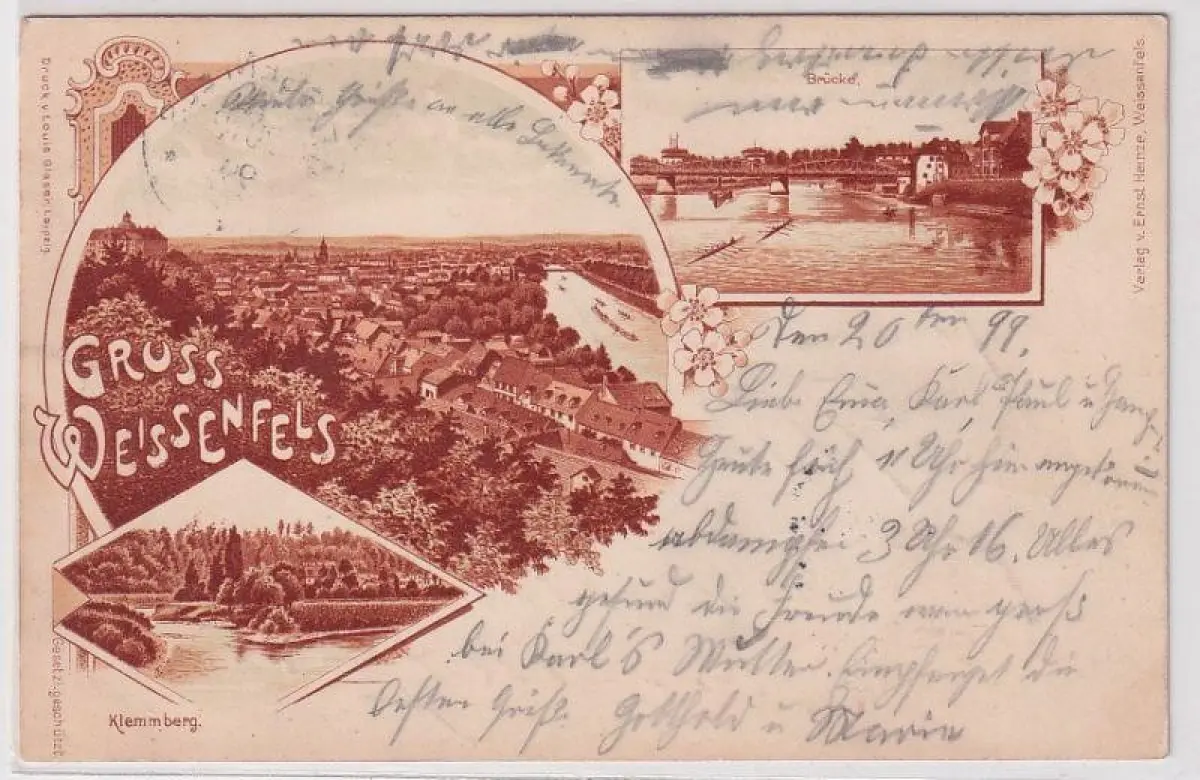 902970 Ak Lithographie Gruß aus Weissenfels Klemmberg, Brücke usw. 1899