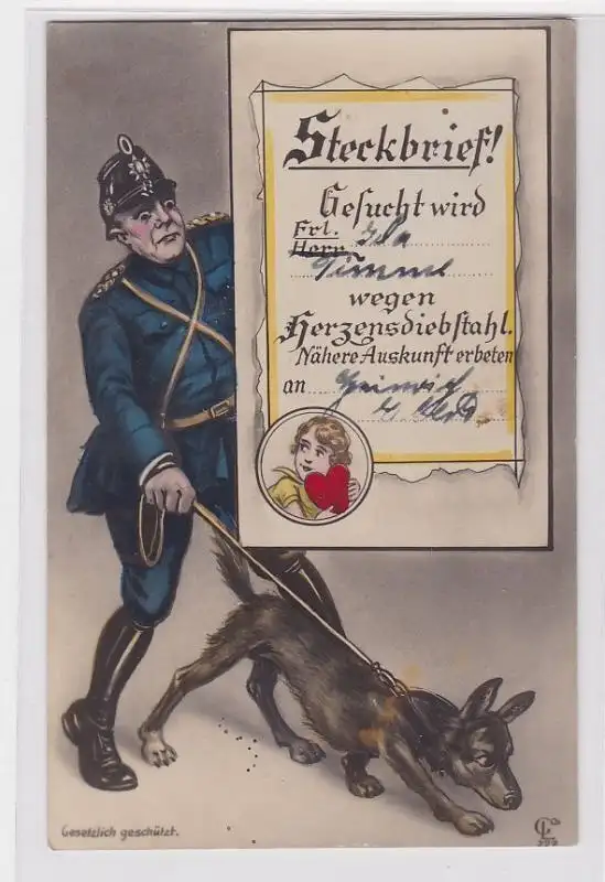 90433 Steckbrief Humor Ak Polizist mit Hund 1929