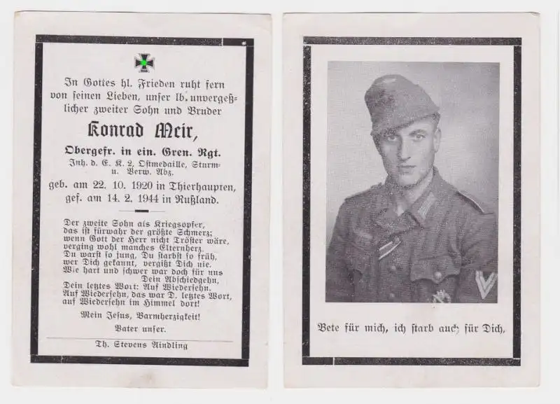 90753 Sterbebild WK2 Grenadier Regiment gefallen in Russland 1944 Sturmabzeichen