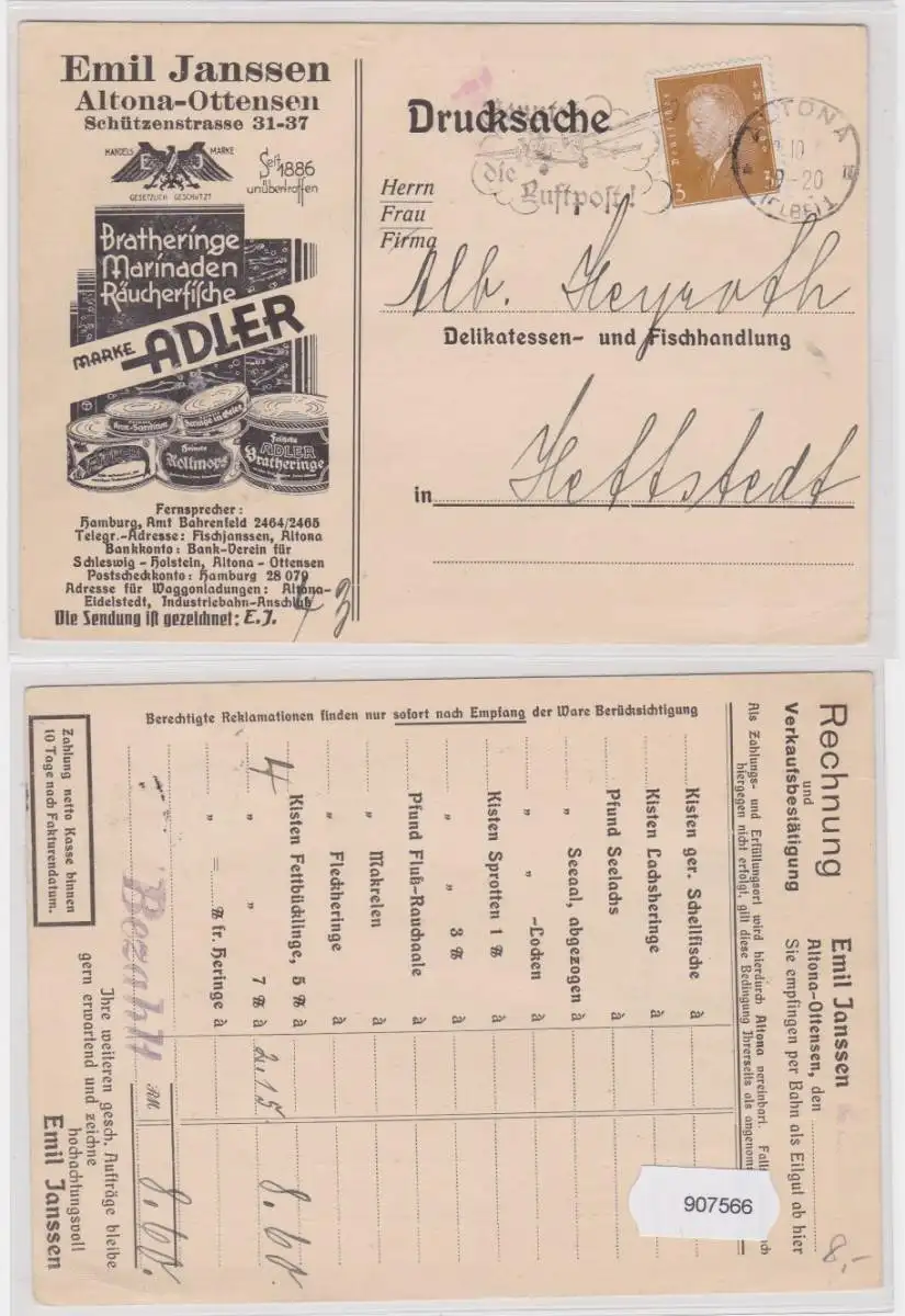 907566 Reklame Ak Altona Ottensen Firma Emil Janssen Marke Adter 1930