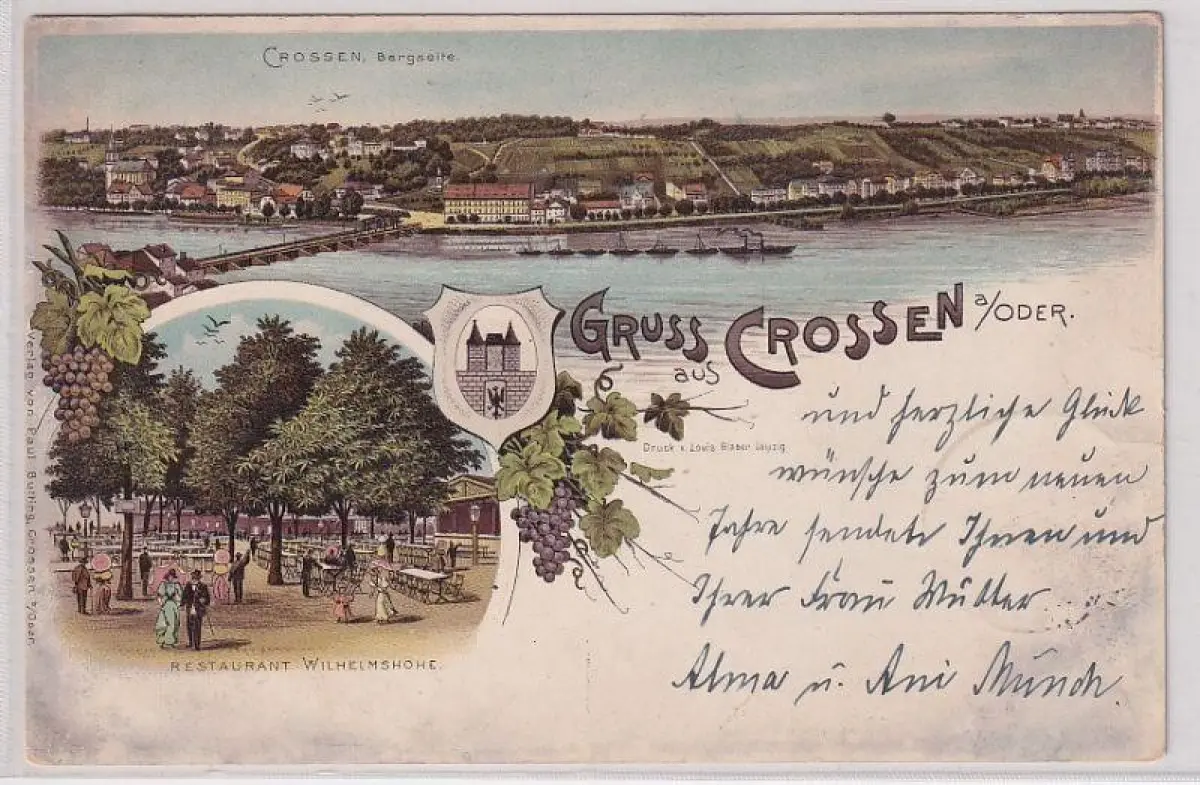 908023 Ak Lithographie Gruß aus Crossen an der Oder Krosno Odrzańskie Restaurant