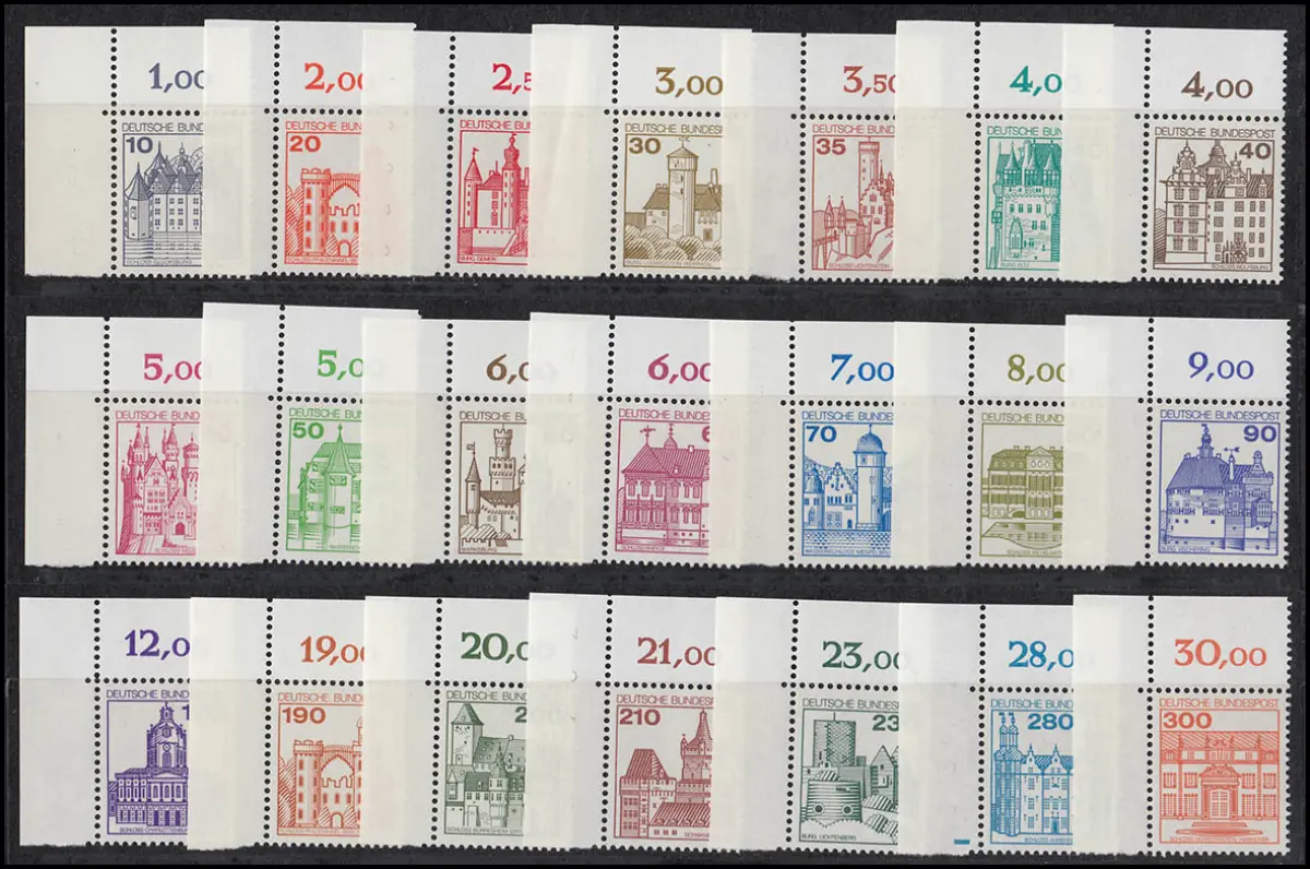 913 ff Burgen und Schlösser 21 Werte, Satz Ecken oben links, postfrisch **