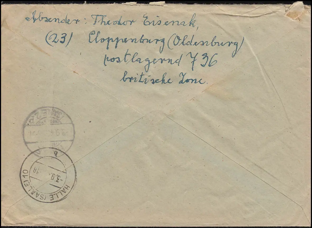 portogerechte Mischfrankatur auf schwerem Fernbrief über 20 Gramm, Ankunftsstempel HALLE/SAALE 2 p 3.9.46