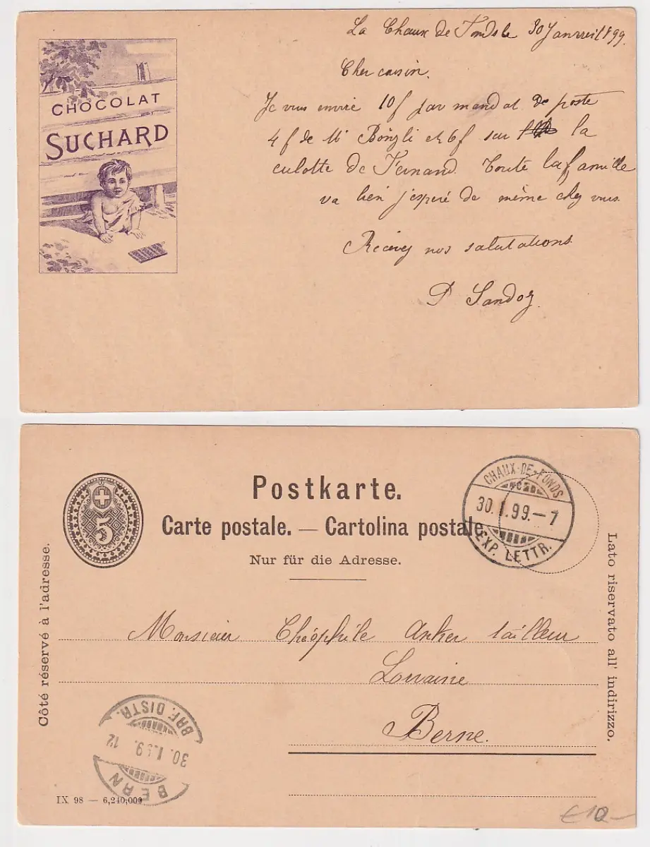 92007 Postkarte Reklame Chocolat Suchard Schweiz 1899