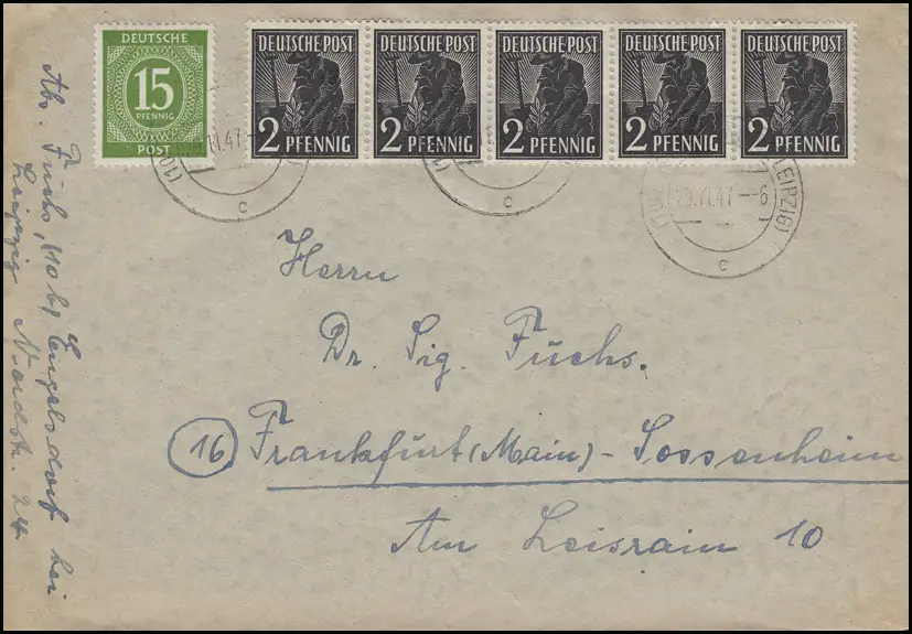922+943 Kontrollrat I+II MiF Brief ENGELSDORF / LEIPZIG 29.11.47 n. Frankfurt/M.