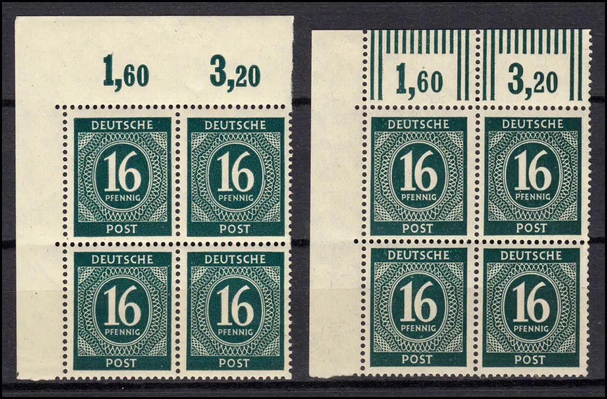 923P + 923W Kontrollrat Ziffer 16 Pf. je ER-Viererblock oben links, Set **