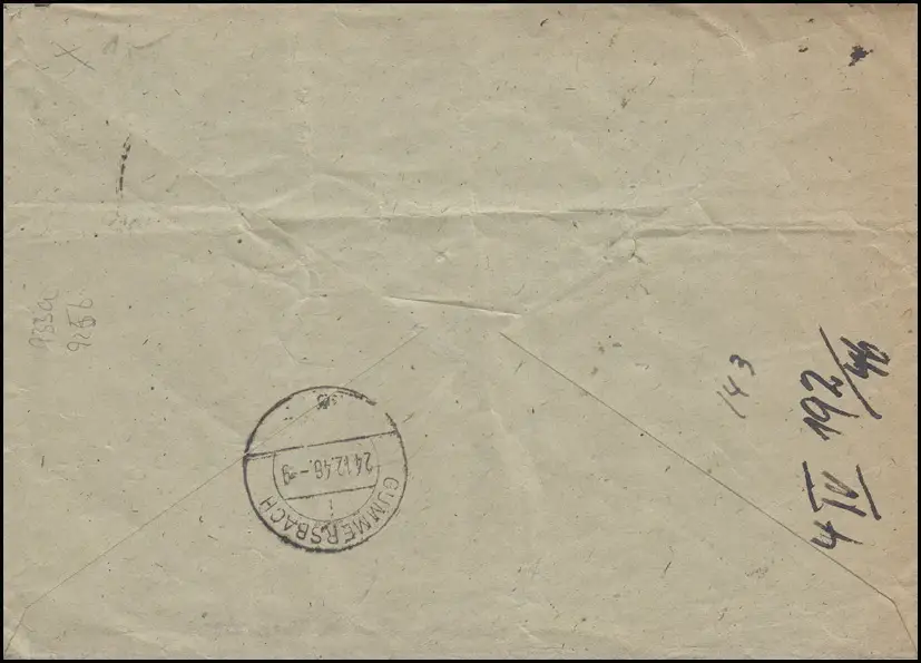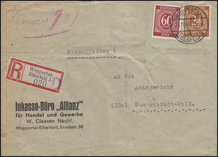 Mischfrankatur auf Fern-Einschreiben mit Ankunftsstempel GUMMERSBACH 24.12.46. Brief bügig laut Abbildung.