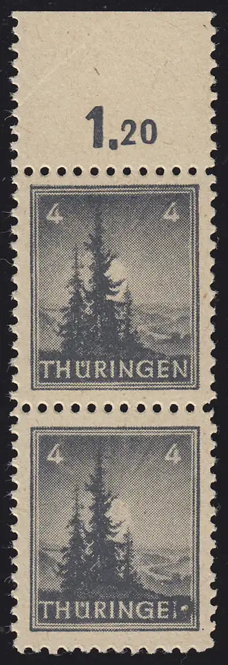 93AXtI Freimarke 4 Pf. senkrechtes Paar mit PLF I THÜRINGEI, Feld 13, **
