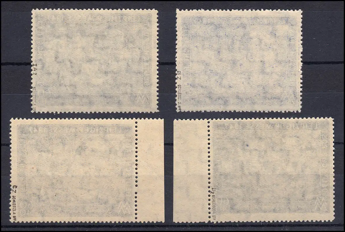 Wasserzeichen-Abart "flach fallende Stufen" in allen Zähnungsvarianten A bis D komplett einwandfrei postfrisch **, alle tiefst geprüft Schlegel BPP. Der MICHEL-Spezial 2024 bewertet dieses Set mit 355,- Euro.