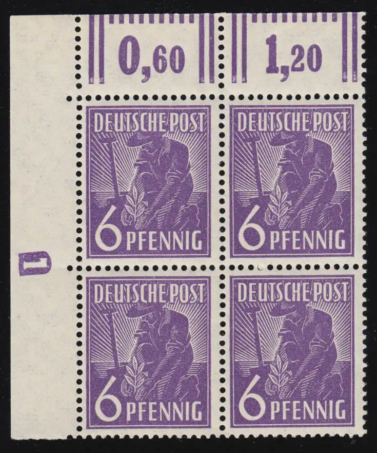 944DZ Kontrollrat II 6 Pf. ER-Vbl. oben links mit Duckerzeichen DZ 1 negativ **