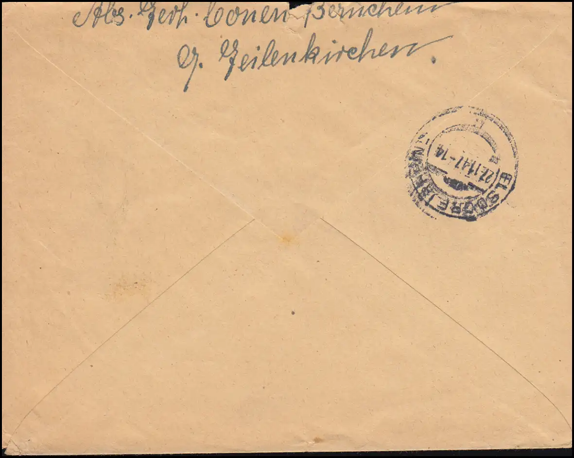 Portogerechte Mischfrankatur auf schwerem Fernbrief per Einschreiben aus Geilenkirchen an die Zuckerfabrik Pfeifer und Langen in ELSDORF (RHEIN) 27.11.47, Bedarfserhaltung