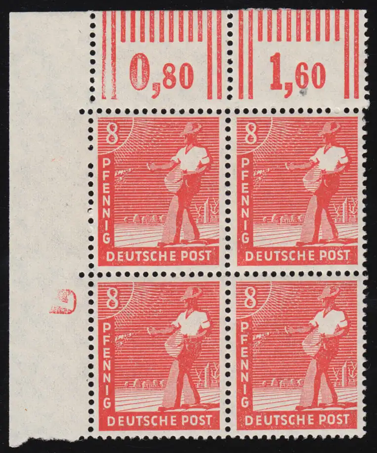 945DZ Kontrollrat II 8 Pf: Eckrand oben links mit Duckerzeichen DZ 7 negativ **