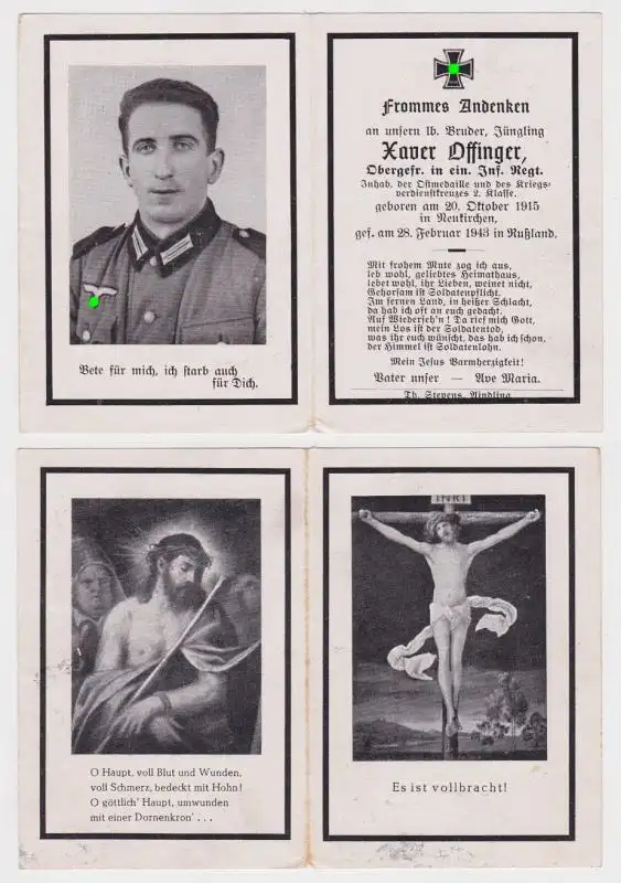 95456 Sterbebild WK2 Obergefreiter Infanterie Regiment gefallen in Russland 1943