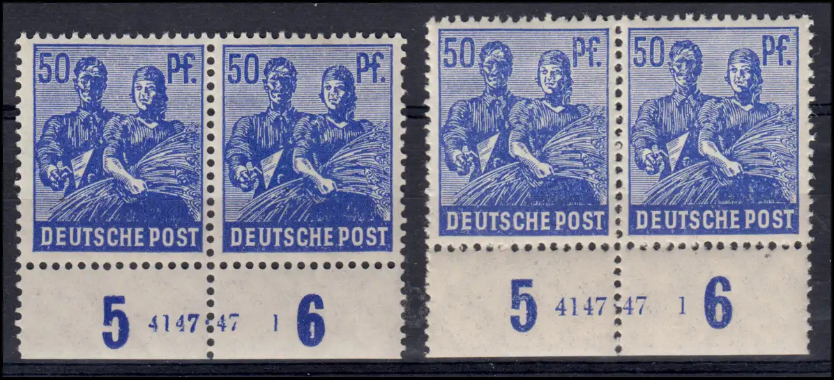 955 Kontrollrat 50 Pf. zwei Paare mit HAN 4147.47 1, fette / magere Ziffern **