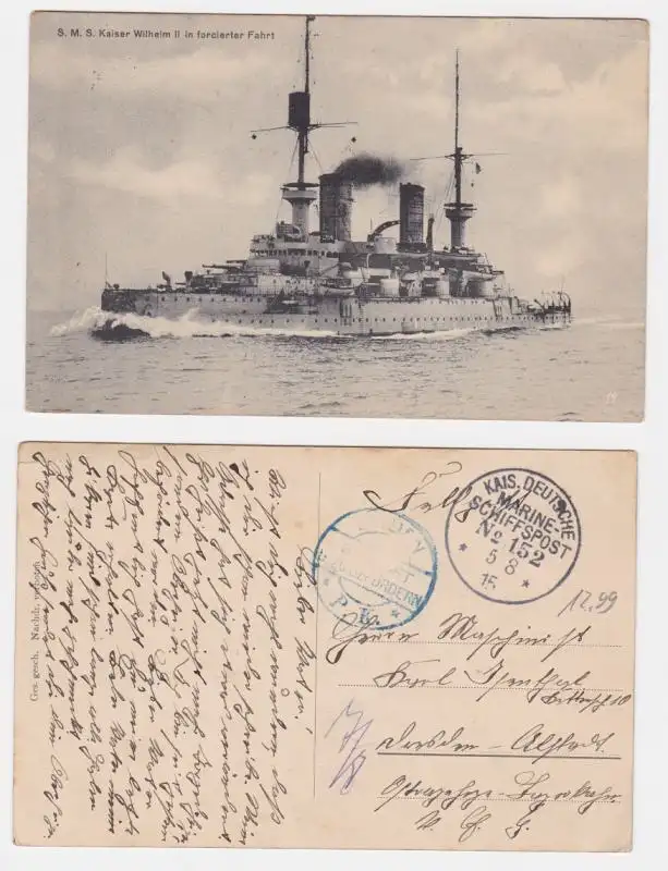 gelaufen als Feldpost 'kais. Marine, Schiffspost Nr. 152', gute Erhaltung, siehe Bild,