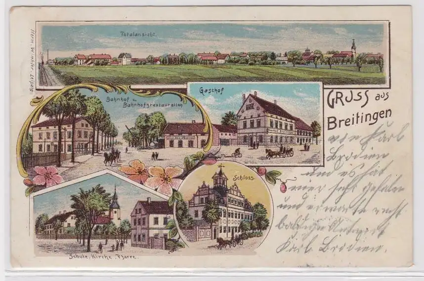 95803 Ak Lithographie Gruß aus Breitingen Gasthof, Bahnhof usw. 1904