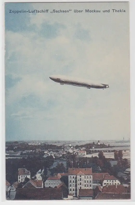 96114 Ak Zeppelin-Luftschiff "Sachsen" über Leipzig-Mockau und Thekla um 1930