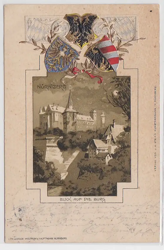 96323 Präge Ak Lithographie Nürnberg Blick auf die Burg 1900