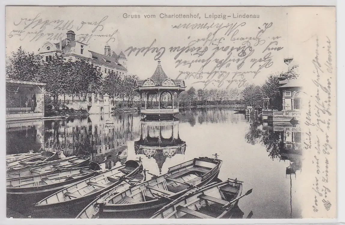 96450 Ak Leipzig-Lindenau - Gruss vom Charlottenhof, Boote in Teichpartie 1903