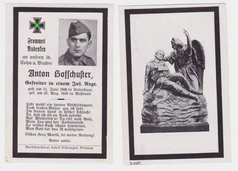 97476 Sterbebild WK2 Gefreiter Infanterie Regiment gefallen in Russland 1943
