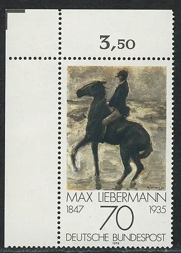 987 Impressionismus 70 Pf Liebermann ** Ecke o.l.