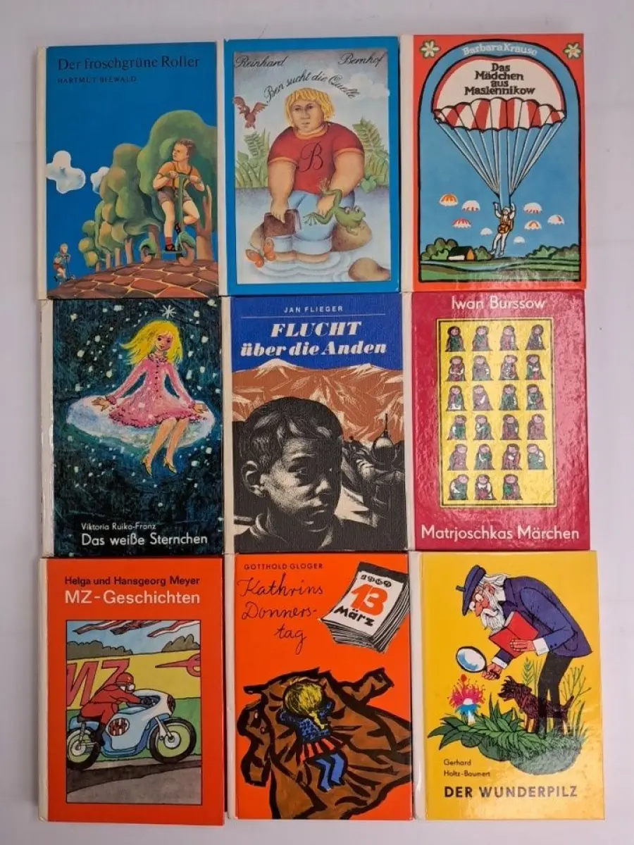 Bemerkungen: Zustand: Einbände etwas berieben, Papier etwas gebräunt. Kleine Trompeterbücher Eine Reise in die Welt der DDR-Literatur Entdecken Sie mit dieser Sammlung die einzigartige Welt der Kleinen Trompeterbücher! Diese beliebten Kinder- und Jugendbücher aus der DDR sind nicht nur ein Stück Zeitgeschichte, sondern auch literarische Perlen voller Abenteuer, Geschichten über Mut, Freundschaft und die Herausforderungen des Lebens. Perfekt für Sammler, Nostalgiker oder als Geschenk für Liebhaber klassischer Kinderliteratur. Highlights dieser Sammlung: Vielfältige Themen: Spannende Abenteuer, historische Erzählungen, märchenhafte Geschichten und lehrreiche Lebenslektionen. Hochwertige Illustrationen: Jede Geschichte wird durch liebevoll gestaltete Zeichnungen lebendig gemacht. Kultureller Wert: Ein authentischer Einblick in die literarische Kultur der DDR ideal für Fans und Geschichtsinteressierte. Warum Sie diese Sammlung lieben werden: Ideal für Sammler: Die Kleinen Trompeterbücher sind begehrte Sammelobjekte. Nostalgie pur: Erinnern Sie sich an Ihre eigene Kindheit oder zeigen Sie einer neuen Generation diese literarischen Schätze. Zeitlose Geschichten: Die Werte und Lektionen dieser Bücher sind auch heute noch aktuell und lesenswert. Perfektes Geschenk: Ob für Sammler oder Kinder diese Bücher bringen Freude in jede Bibliothek. Tauchen Sie ein in die Geschichten, die Generationen geprägt haben, und sichern Sie sich diese wunderbare Sammlung der Kleinen Trompeterbücher!