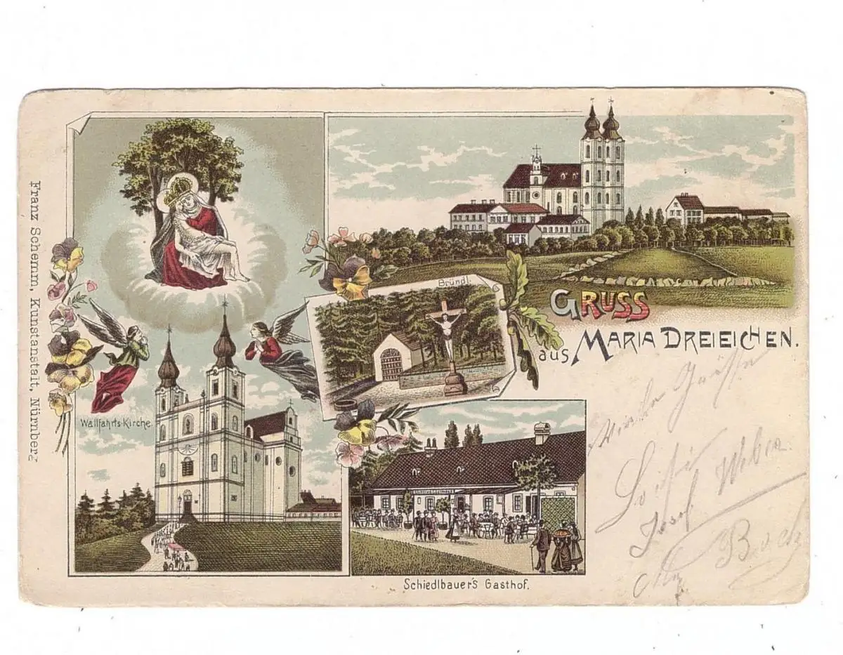 A 3573 ROSENBURG-MOLD - MARIA DREIEICHEN, Lithographie, Schiedlbauers Gasthof, Wallfahrtskirche...