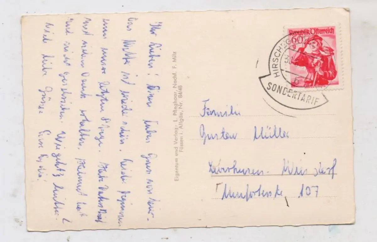 A 6991 HIRSCHEGG / Kleinwalsertal, Im Wäldele, 1951