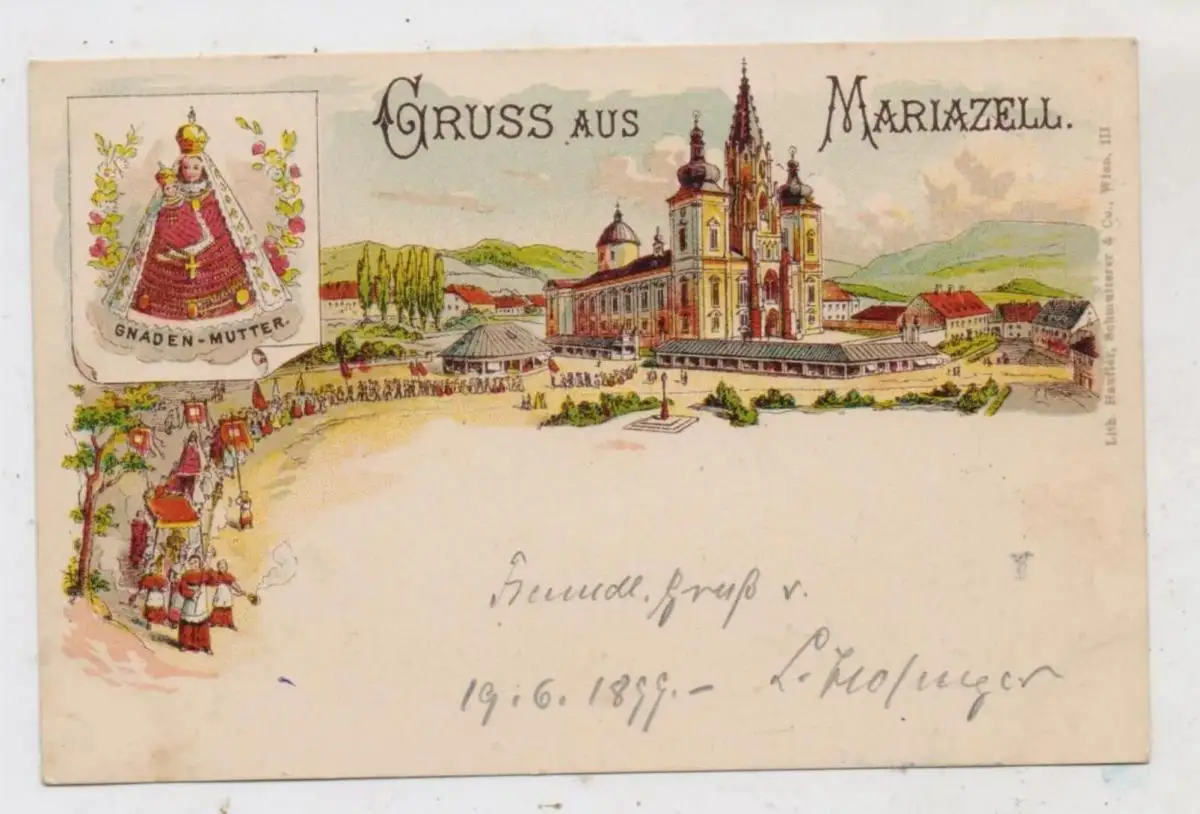A 8630 MARIAZELL, Lithographie 1899, Prozession vor der Kirche
