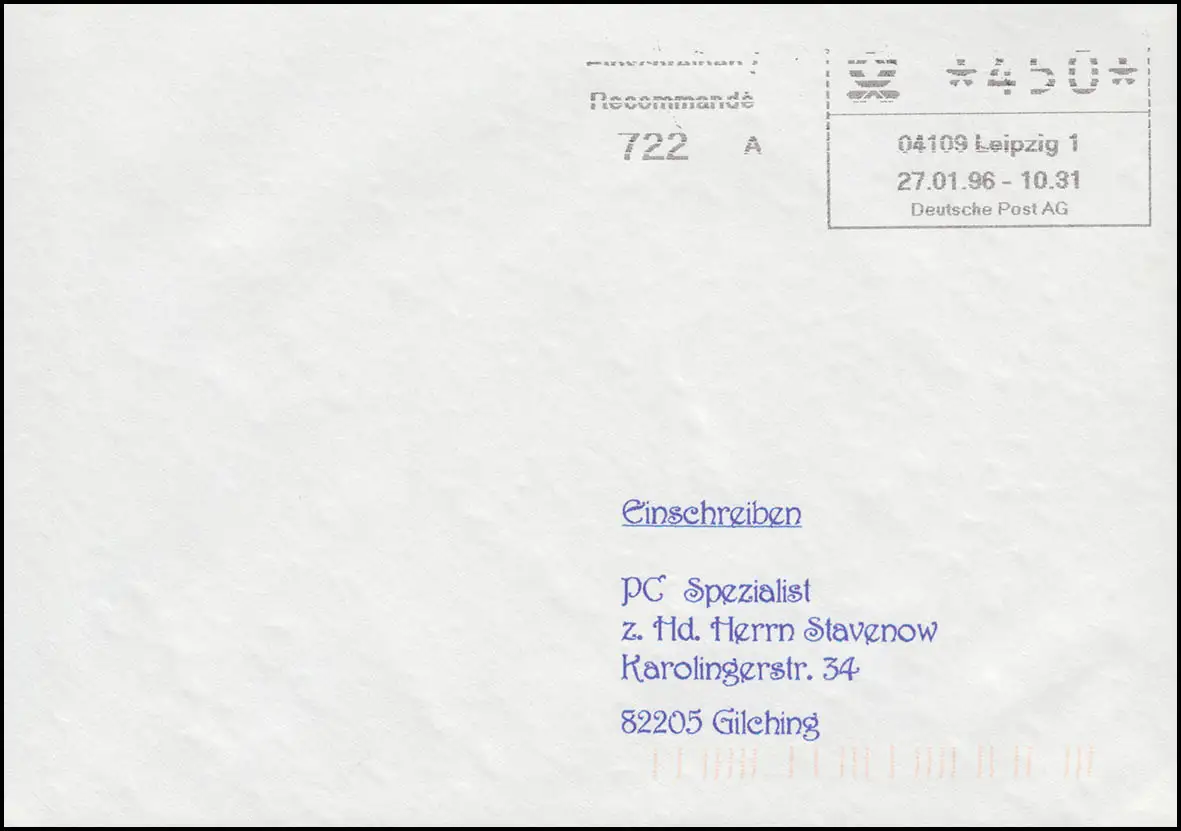 ABAS-Fehldruck Leipzig am 27.1.1996 R-Bf Farbe rot fehlend + Wertfeld oben offen