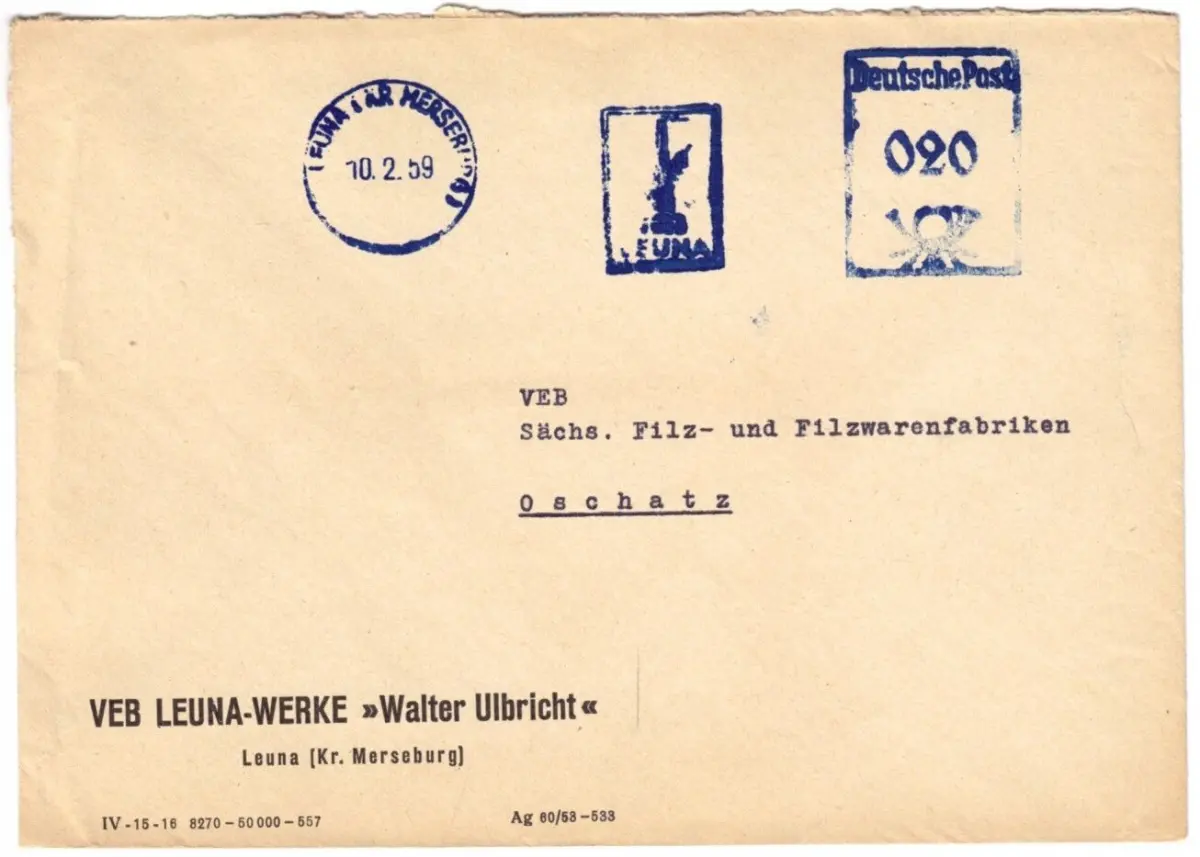Absender: VEB Leuna-Werke "Walter Ulbricht", Leuna (Kr. Merseburg)